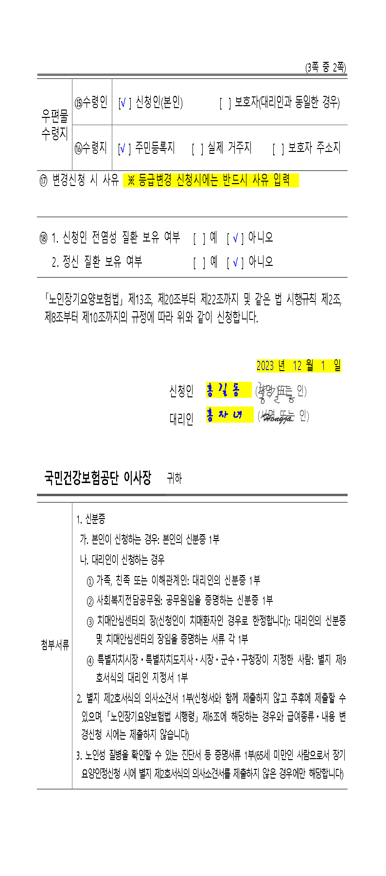 장기요양인정신청서 작성 방법 (샘플 첨부)